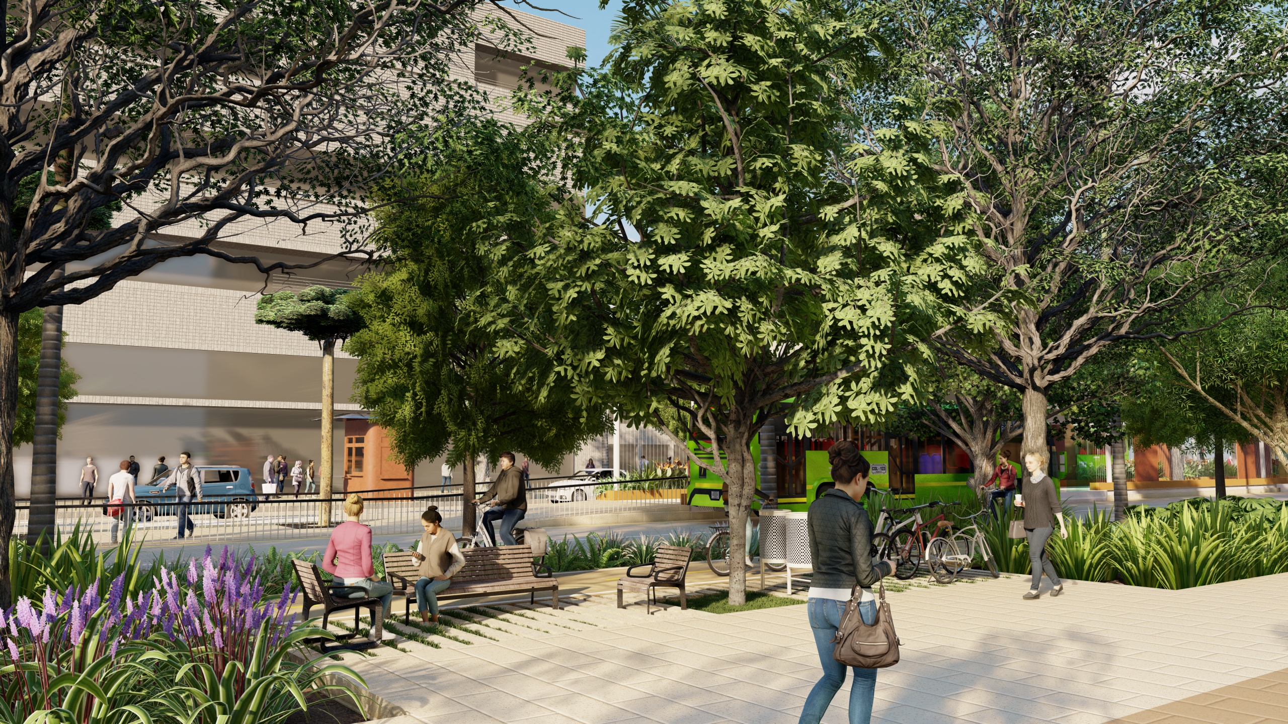 Además, el proyecto aplica la Pirámide de Movilidad Sostenible, priorizando peatones y ciclistas sobre los vehículos motorizados, y propone una infraestructura segura con eco- estaciones, paraderos accesibles, intersecciones semaforizadas y ciclorrutas.