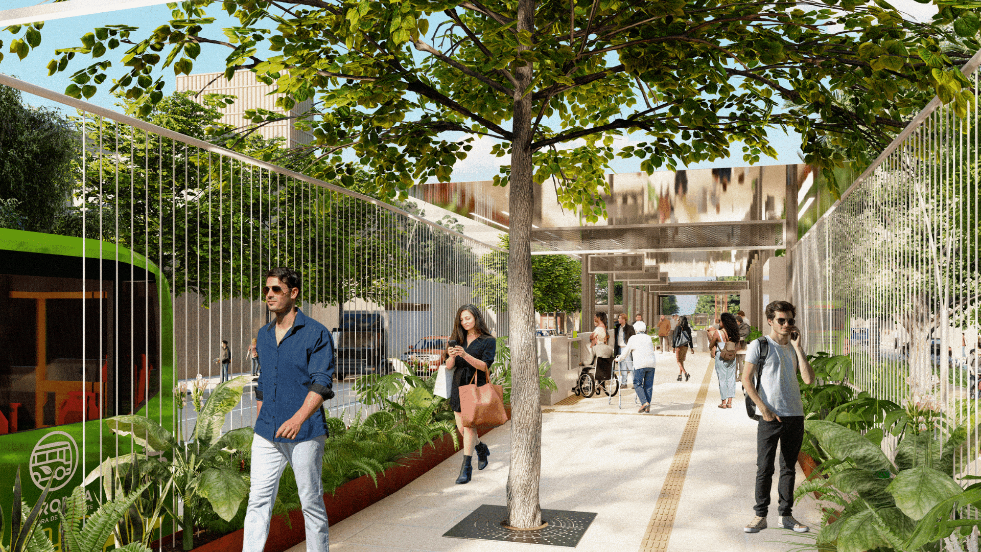 Grupo Verde lideró la implementación de las premisas del proyecto, asegurando la coherencia entre los diseños de los tres tramos y desarrollando la Cartilla Sello Corredor Verde, una guía con estrategias y lineamientos en materialidad, mobiliario, paisajismo e iluminación. La intervención se estructuró en tres ejes: